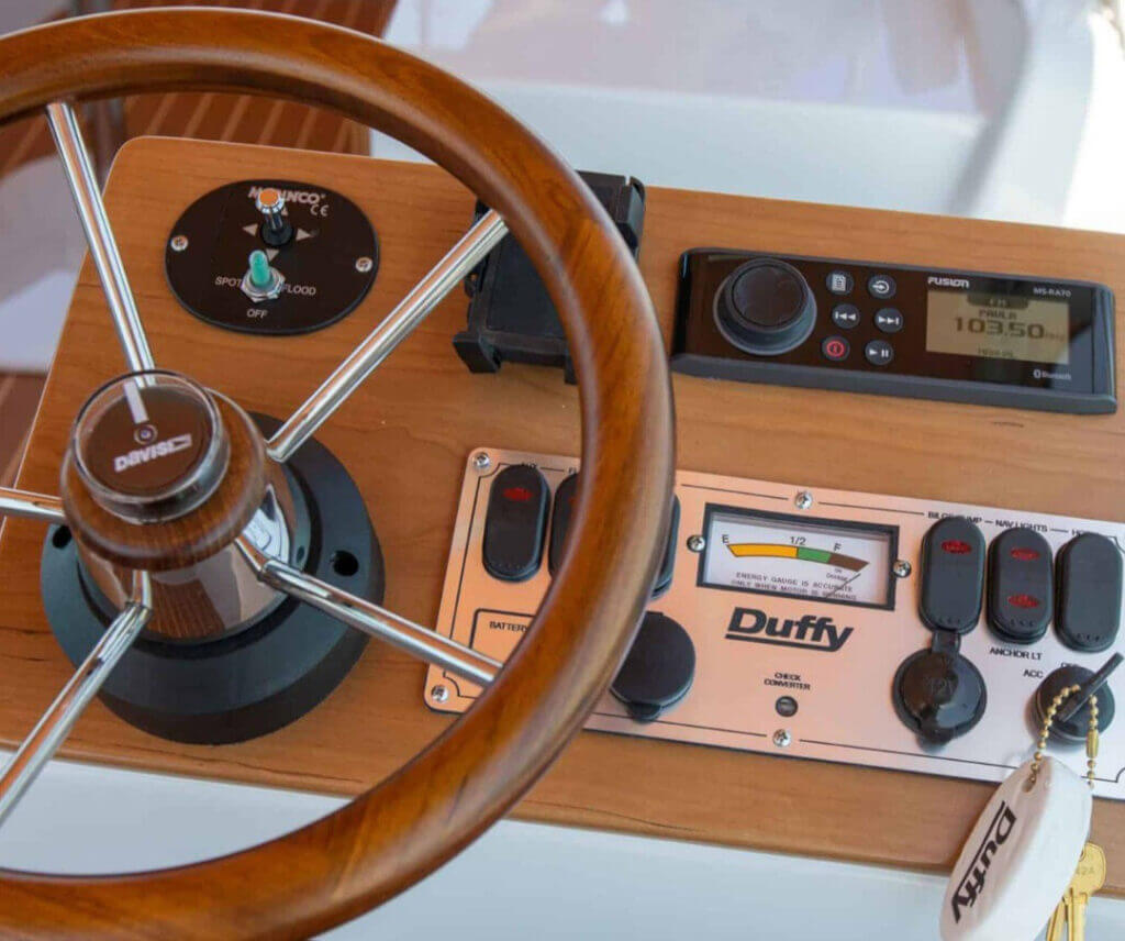 The Duffy Bay Island 22 boat offers the most interior space of any of our other models, making it an excellent space for entertaining up to 12 people. It offers boating enthusiasts a full window enclosure system to keep you and your passengers comfortable in any weather and allow for maximum visibility.